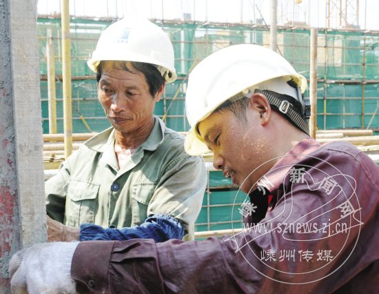 连日来,高温酷暑天气一直影响我市。在烈日的炙烤下,建筑工人们坚守岗位,挥汗如雨,为城市建设默默奉献着。图为昨日上午记者在“黄金水岸”建筑工地拍摄的镜头。