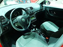 晶锐运动版的内饰大量采用了黑色,运动气息在进到车内的一瞬间便引入眼帘。中控太上部为空调控制区,下部为音响操作区,中控台的分区分区非常清晰。晶锐运动版的仪表盘也采用了黑底,双边式的仪表针造型尖锐,白色的表盘刻度非常清晰,中间的显示屏显示公里数信息,非常易于驾驶员观看。尽管Fabia晶锐是一款A0级的小型轿车,但是其车身长度达到了3992毫米、轴距为2465毫米、宽度为1642毫米,因此这样一款小车的车内空间丝毫不会落后于目前国内大多数同级别车型。