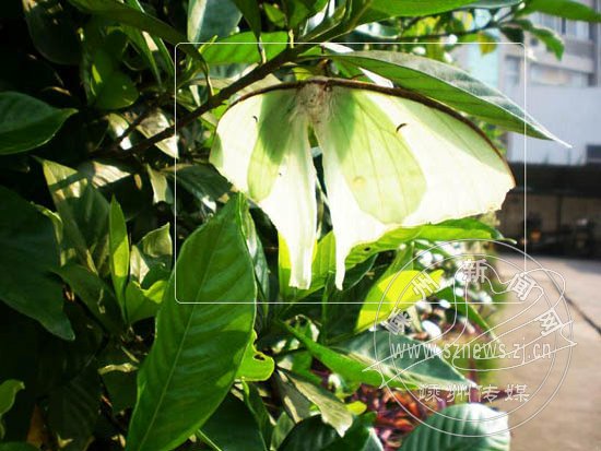 持续的高温天气,让动物们也受不了。近日笔者在城西湿地公园附近的文昌苑看到,一只白粉蝶(见圈内)为躲避烈日,正藏身在一大丛栀子树叶下“乘凉”。