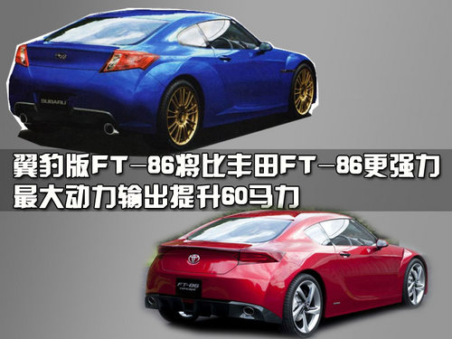 斯巴鲁版FT-86将搭载斯巴鲁知名的水平对置四缸发动机,动力则采用翼豹STI所使用的2.0T涡轮增压发动机,斯巴鲁版FT-86将比丰田版在动力方面提升60马力,同时还将配备6速手动变速箱,这样的搭配对于这款后驱车来说绝对是一种完美的组合。