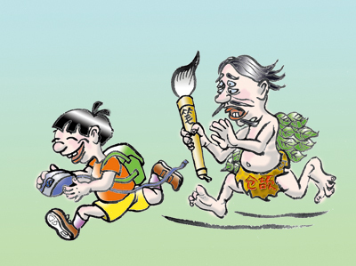 一个民族的文化是否得到光大,不是取决于它吸收了多少外来的精华,而是决定于这个民族优秀的文化是否得到很好的传承。联合国教科文组织早就提出“学习母语是一种权利”,法国规定“法产商品的商标必须使用法文”,韩国主张“立志于国家通用语言发展和国家通用语言文化创造”,俄罗斯甚至把保护母语纳入了国家安全战略。在邻国日本,从小学到初中都有习字和书法课,文科大学里书法也是必修课。汉字是我们文化的根,是滋养我们现实生存发展的血液。在网络时代,我们不能“握着鼠标忘了笔杆”,汉字不能沦为失落的文明。(人民日报 郭立场)