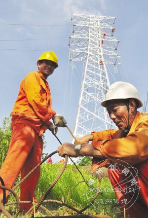 电力工人错时施工保进度