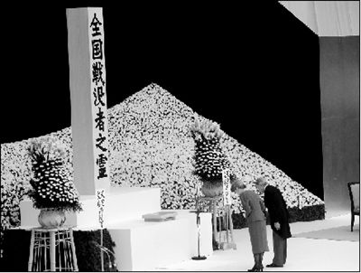 今年是日本战败65周年。一年一度的“全国阵亡者追悼式”15日在东京武道馆举行。日本首相菅直人、国会众参两院议长以下大约1800名政府官员和5400名阵亡者遗属参加仪式。日本天皇明仁、皇后美智子循例出席。