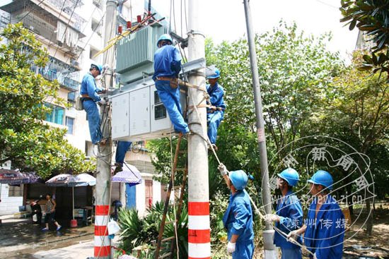 接报后,市供电所立即派出由9人组成的抢修小组,冒着酷暑,连续作战,半天之内将原200千伏安的变压器更换成400千伏安的变压器。