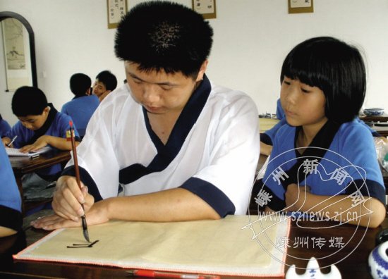 走进市艺术村,如果你仔细聆听,你将于风声鸟声之外听到童稚的朗诵声:人之初,性本善。性相近,习相远……如果你再仔细聆听,你将会发现这声音来自艺术村里面的剡溪书院。循着这声音向上走,你还可以看到剡溪书院国学班那些着古人衣袍的孩子。这些孩子年纪都不大,以幼儿和小学生居多,他们穿着古代人的服饰,握着古代人的毛笔,念着古代人的诗句。让人仿佛觉得穿越了时空隧道,以为回到了魏晋,回到了唐宋。