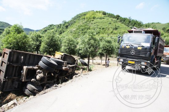 一自卸车侧翻 货车司机获救