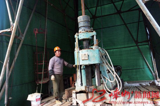 日前,记者从温泉度假旅游区获悉,2号温泉井发现了碳酸温泉。该温泉井位于地下800米左右的深度,出水温度在45摄氏度左右。据了解,碳酸温泉为我省首次发现,填补了省内旅游项目的空白。图为2号温泉井正在钻探的场面。
