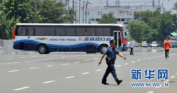 菲律宾警方23日说,一辆旅游观光客车当天上午在马尼拉遭劫持,车上有25名乘客,多为中国香港游客。劫持者是一名被辞退的警察。目前,警方正在现场同劫持者谈判。新华社记者在现场看到,劫持者已释放6名人质。新华社/法新