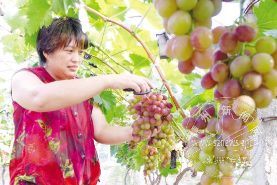 葡萄园的主人裘冬霞忙着采摘葡萄。她告诉记者,晨起摘下的葡萄最漂亮了,经过一夜的“睡眠”,积蓄了甜分和香味,带着清晨薄薄的露水。这段时间已进入了葡萄采摘的旺季,每天,裘冬霞都和家人忙碌在这片100多亩面积的葡萄园里,心被丰收的喜悦充盈得满满的。