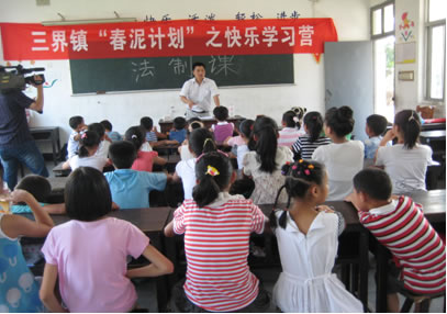 暑期是孩子们的乐园,然而相对于三界镇的广大农村留守学生来说,由于客观条件的制约,在暑期中他们更多是呆在家中,一定程度上疏于学业。镇有关部门正是看到了这一点,为了进一步抓好暑期青少年教育和管理,营造一个安全、充实的假日环境。这次三界镇团支部组织的开展“春泥计划”行动履盖全镇六个片,300名留守学生,主要进行一些集体学习和娱乐活动。镇司法所更是见缝插针,及时将法制教育渗透其中。同时还积极开展一些法律知识小竟赛、小评比活动中,从而大大增强了同学们学法的趣味性,收到了良好的教育效果。