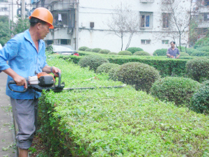 记者从市园林管理处了解到,夏季由于天气比较热,为了保证植物的成活也为了不影响景观 ,一直没有进行大的修剪, 随着天气的转凉,园林管理处组织人员将利用一个月时间对小区及市区主要道路的绿化带及草坪进行修整。图为8月28日工作人员正在崇安里修剪绿化带。
