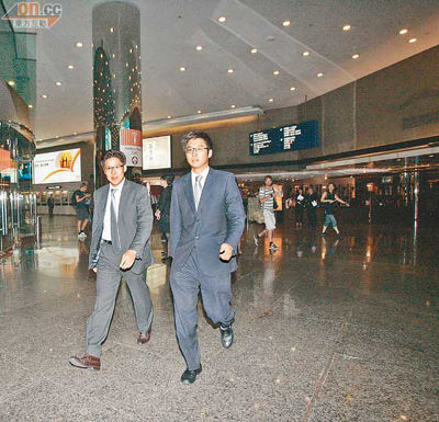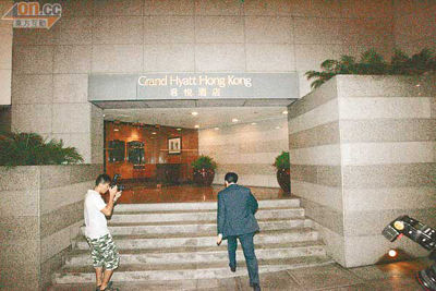 霍启刚(左)匆匆赶往君悦酒店。