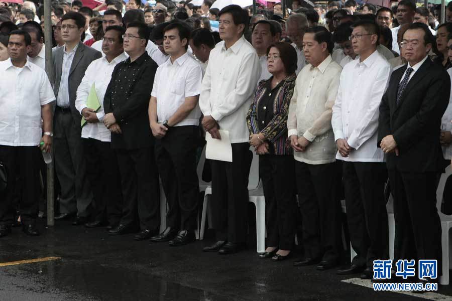 8月31日,在菲律宾首都马尼拉,来自菲律宾和中国的政府官员和群众参加劫持人质事件悼念活动。新华社发(法布里加尔摄)