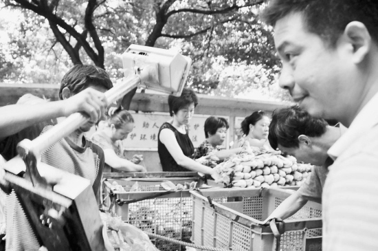 8月29日,嵊州市江滨市场农民摊上,一辆满载青菜的农用三轮车刚停稳,就以每500克1元的价格叫卖,马上引来了市民的热购。据悉,时下新鲜蔬菜在嵊州价格比较平稳,当地蔬菜基地与农民直接进城销售,减少了中间环节,让市民得到了实惠。