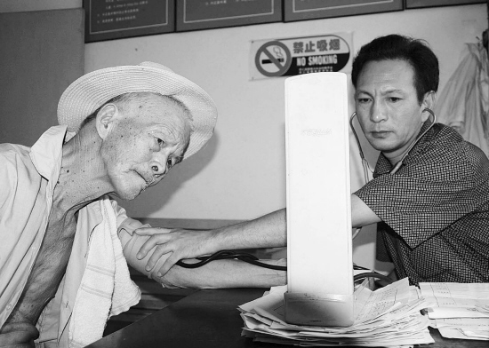 图为日前嵊州市仙岩镇社区医院为该镇参加农村合作医疗保险的农民进行健康体检。据悉,近年来嵊州市有50多万农民参加新型农村合作医疗保险,政府分期分批组织的农民体检已成为关爱该市农民健康的主要方式。 (记者 李苏英 摄)