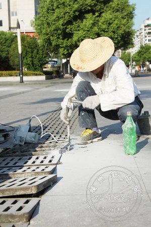 由于前段日子连续高温,市区文化广场的地砖也经不住太阳的暴晒,有多处被晒裂后拱起,凸出地面并出现明显的裂缝。行人路过时如果不注意脚下,很容易绊倒摔伤。发现这一情况后,市园林管理处立即组织人员,对广场受损水箅(水栅)、地砖进行切割整修,铺放平整。