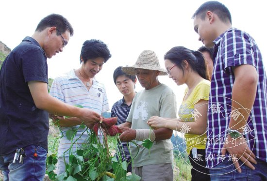 在北漳镇工作的吕柯等6名党员大学生村官,立足山区,联合当地的15户农户,按照“合作社+农户”的经营模式,成立了“八月岭农副产品专业合作社”,这是我市首家有大学生村官参与的专业合作社。合作社先后与浙江林业大学等多家大专院校合作,引进优质番薯、花生、茶油等新品种,引领当地山区农民致富。图为昨日大学生村官展示自己引种的新品种番薯。