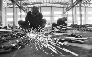 浙江双鸟集团自主研发的锚链先后获得美国ABS、挪威DNV、日本NK等世界多家全球顶尖船舶制造商的认可,顺利进军国际市场,推进了该集团“双鸟锚链”的蓝海战略。图为9月2日上午,该公司锚链车间内,工人正在加工万吨级远洋船舶锚链。 (记者 张亮宗 摄)