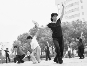 8月29日早晨,嵊州境内出现入秋以来首场大雾。据悉,秋季早晨雾多与空气中水汽含量有关,水汽含量与温度上升成正比,入秋时气温多为20℃到30℃上下,在一定温度条件下,空气中多余的水汽就会凝结,变成小水滴或冰晶,导致秋天早晨多雾。图为当天早晨嵊州市民在该市中心广场雾中晨练。