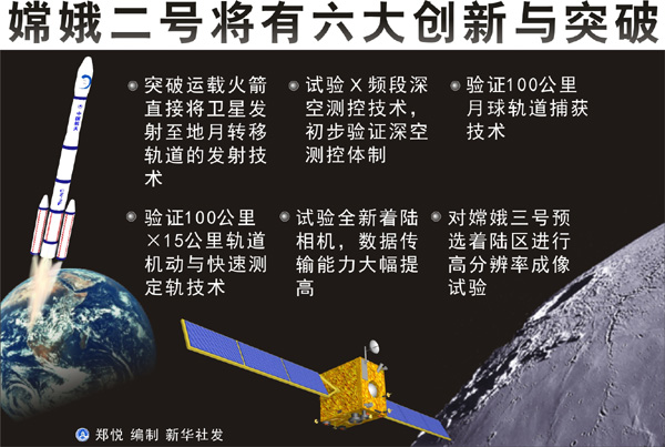图表:嫦娥二号将有六大创新与突破 新华社发 将降落到距月球仅15公里处的轨道