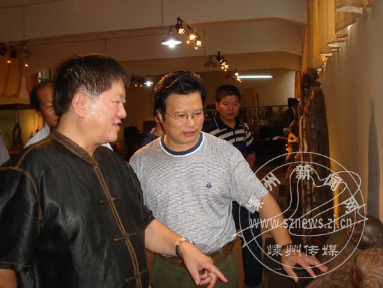 9月10日,30多位来自全国各地的根雕艺术家趁着会议的空隙时间,相约来到艺术村,参观我市的根雕陈列馆,一个个大师和专家为根雕产业在嵊州这个越剧之乡的异军突起而感慨不已。