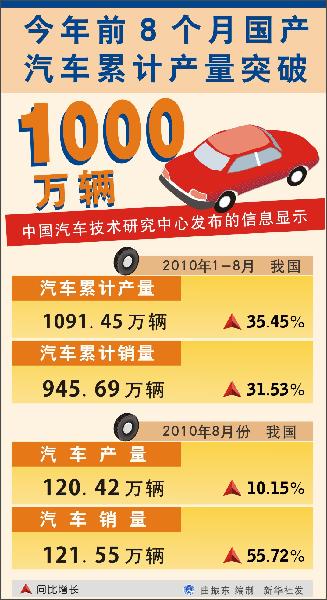 今年前8个月国产汽车累计产量突破1000万辆 新华社发