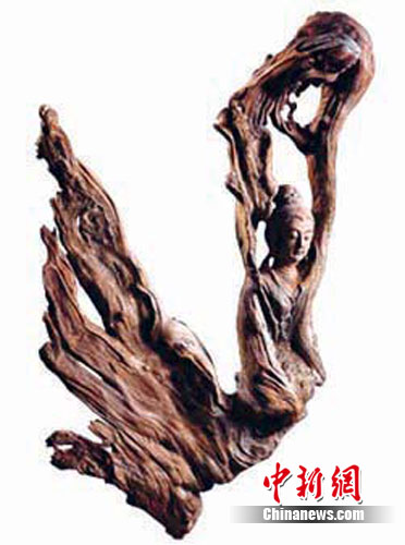 记者11日从位于中国女子越剧发源地——浙江省绍兴嵊州市的“全国根雕艺术研究院”获悉,上世纪末和本世纪初,在嵊州剡溪江底,出土了大量深埋千百年的珍稀古沉木。嵊州众多的民间艺人,以古沉木为原料,雕刻加工成一件件珍贵的根雕艺术品。台湾客商为这些艺术品所深深陶醉,更是在台北开出了专营店,让海峡两岸共同感受到了远古的呼唤。