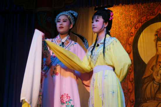 团队成员蒋丽萍郭栎华于嵊州红楼越剧团演出
