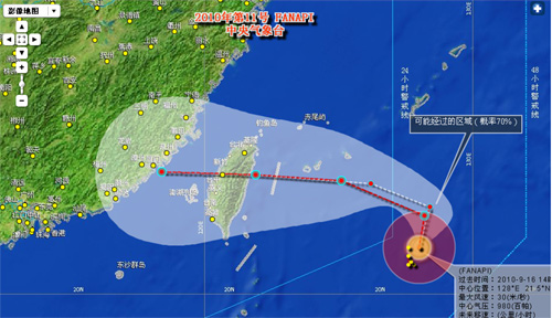 目前,“凡亚比”的中心附近最大风力9级(23米/秒),中心气压为985百帕。据省气象台预报,风暴中心将以每小时5-10公里的速度移动,强度逐渐加强。