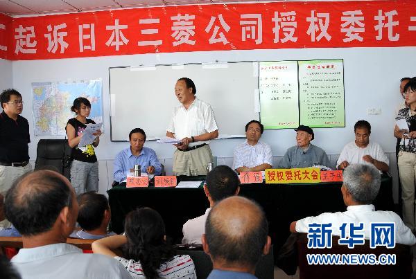 当日,他们代表二战期间被掳日本的上千名劳工在委托起诉授权书上签字,启动对日本三菱公司在华机构的民事诉讼,寻求公平合法的战后赔偿。这是中国劳工首次在国内集体对日企业提起民事诉讼,同时首次实现了对日诉讼适用中国法律和由中国律师代理。三菱材料公司是二战期间众多奴役中国劳工的日本企业中的一个。资料显示,自日本发动侵华战争,至1945年正式投降,日本共有35家企业的135个作业点强掳和奴役了中国劳工。中国共有近4万名劳工被强行抓到日本做苦役,期间一些人受尽迫害,致约7000人死亡。这是签字仪式现场。 新华社记者刘宝森摄