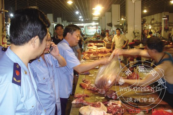 为确保市民吃上放心猪肉,9月16日,鹿山工商所对江滨农贸市场猪肉摊进行了重点检查整治。据悉,该所还将对辖区范围内的猪肉屠宰点进行一次大检查,从源头上防止白条肉、注水肉、病害肉等流入市场。