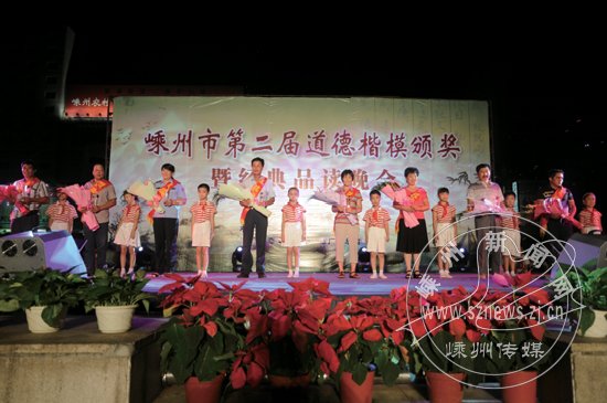 昨晚,由市文明委主办,市委宣传部和市文明办承办的第二届道德楷模颁奖暨经典品读晚会在市区文化广场举行。市委常委、宣传部长何国英,市人大常委会副主任陈自军,副市长夏春燕,市政协副主席李香富出席晚会,并为李政权等8位道德楷模颁奖。图为道德楷模在颁奖现场。(记者 史华东