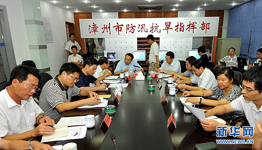 国家防总工作组福建指导防御工作 9月19日,国家防总工作组来到福建省漳州市检查指导防抗11号台风“凡亚比”工作。福建省气象台预计,20日6时左右“凡亚比”将在福建省漳州市漳浦一带沿海登陆。 新华社记者 魏培全 摄