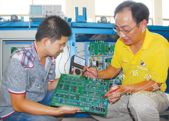 市科源电气电子有限公司总工程师张志远经过5年时间研发的新一代中频电子节能炉,节能效果显著,使省内50余家钢铁加工企业摒弃了传统的燃煤、燃气、燃油炉,移去了一支支直耸云天的烟囱。图为张志远(右)与技术人员一起检测节能炉控制芯板。