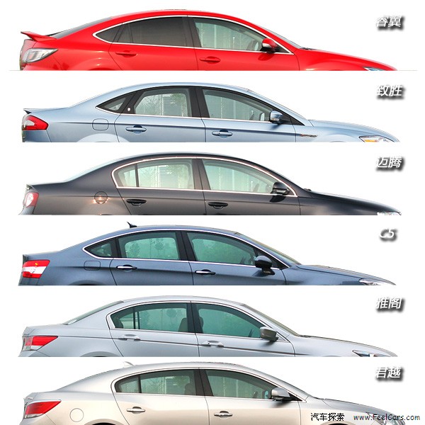其实舒适派的C5倒是显得线条很饱满,车尾也不显得很长,整体造型有些张力。更加值得一提的是车子的侧窗和腰线都可以媲美睿翼与致胜,仅从造型上而言,不要小瞧C5啊。雅阁的车顶线条倒是一付正统派,侧窗也没有更多可描述的,唯独它的腰线真的让人印象深刻。与其它车向外的褶皱不同,雅阁的腰线是向内凹的设计,我曾经形容过它就好像是载誉归来满身伤疤的战士。
