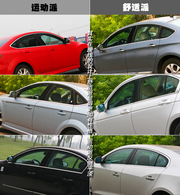 从车头到车尾,每个车都显示出了不同的特性,当然它们之间也分门别类地表达出了相近或者相似的个性,不然拍别的划分可就不容易实现了。其实无论是正前还是正后,它们的横截面积都没有另一个方面大,那就是侧面,因此最后我们从每辆车的侧面来为两个派别做最终评判。