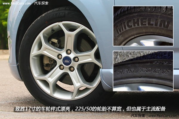 致胜运动型的轮圈和睿翼形式上有些像,但感觉更有力度。17寸的大小以及米其林225/50的轮胎也都很说得过去,是这个级别的主流配备。