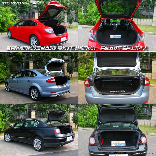 后备箱的设计除了睿翼之外的五款车都没有太大的区别,只是使用上的方便与否而已。睿翼轿跑由于掀背的造型而使得它后备箱整体与后风挡玻璃同时开启,颇有运动车之风。