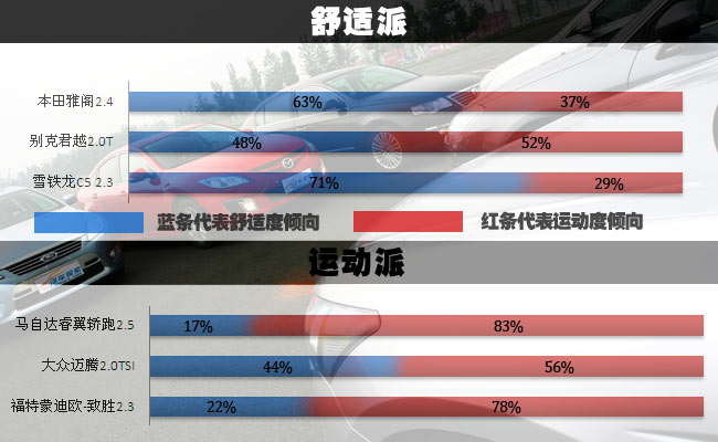 经过了如此多项目的比拼,我们的确能感觉到两组对手比拼的激烈程度。运动派的睿翼和致胜始终坚守着自己应属的阵地,而同组的迈腾虽然一开始表现得有些飘忽,但随着比拼的逐渐展开,它也一点点的展示着自己运动员的实力。而放眼另一组,也就是舒适派的三名选手。C5和雅阁也始终保持着自己商务,稳健的作风,并且在个别项目的表现上有靠拢运动组的趋势,但本质上并不影响自己的定位。君越从一开始就以自己独特的美式作风展现,始终保持在运动与舒适之间,但最后的尺寸之争还是让它似乎彻底归于舒适一派......当然,一切还没有结束,而是刚刚开始,还有内饰以及真正体现运动舒性的驾驶操控等着大家去评断......
