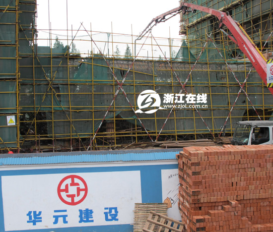 该项目有两幢19层的高楼,发生坍塌的是夹在两幢楼中间的一幢6米左右高的楼房。据现场工人介绍,当时水泥灌浆车正在往这幢楼浇灌水泥,不知什么原因,已经做好的模板连同脚手架顷刻倒塌了。