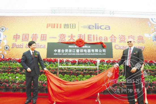 昨日上午,浙江普田电器有限公司和意大利Elica集团有限公司合资庆典仪式在普田公司内举行,经过近三年多时间的合资谈判后,两家企业正式宣告成功“联姻”。