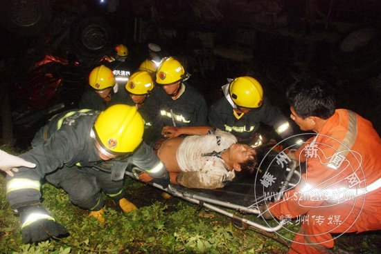 昨日凌晨1时许,甬金高速金华往宁波方向88K+300M(嵊州甘霖镇)路段发生了一起交通事故,一辆运载木板的大货车因超车不当与一辆集装箱货车发生摩擦,致使两车翻下路基,货车上两名乘客被困。当地消防官兵、高速交警等救援人员迅即赶到事发现场,及时将两人救出,事故最终造成1人死亡、1人受伤。