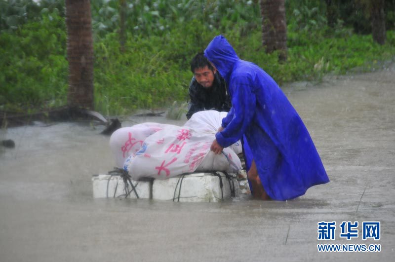 海南潭门港发生洪水造成渔民1死3失踪 10月7日,渔民正在捡拾被海水冲上岸的物资。因持续强降雨,海南省琼海市潭门港5日晚间至6日晨突发洪水,致使大批渔船搁浅、沉没,目前已造成1名渔民死亡,3名渔民失踪,30多名遇险渔民获救。新华社记者 郭程 摄