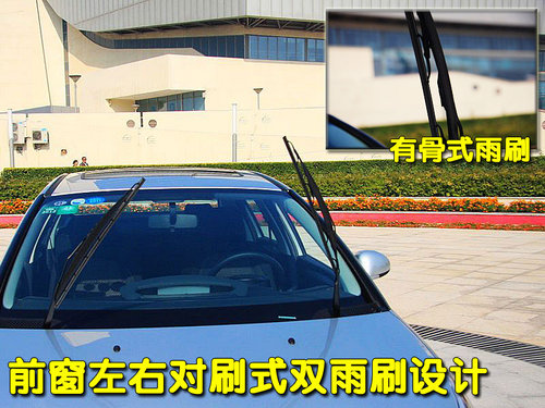 东风雪铁龙2011款世嘉三厢的雨刷为传统的骨架式雨刷,节省了一部分车主在易耗品上的支出降低了日后维护、保养的成本。值得一提的是世嘉的雨刷为左右对刷式设计,较传统一侧式雨刷擦覆面积更大。