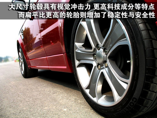 大尺寸轮毂除了气派、吸引眼球以外,在功能方面的优势也显而易见。通常大尺寸轮毂会搭配较宽的轮胎,从而也进一步增加了车辆高速的稳定性,另一方面还会增强抓地力,刹车的距离也随之缩短。在技术方面,由于尺寸较大,轮圈中央与圆周外圈的距离更远,所以需要更精密的设计与数据确保轮圈的真圆及耐冲击力,所以说科技含量也越高。不过大尺寸轮毂也不是没有缺点,由于轮胎的附着面更宽,与地面的摩擦系数也就越大,所以油耗的增加也是必然的。