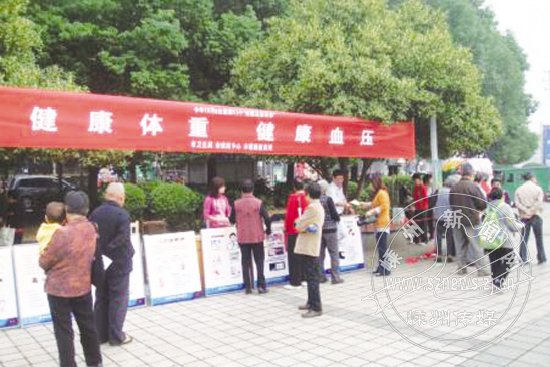 昨日是第13个“全国高血压日”。市卫生局、市疾控中心、市健康教育所在中心广场举办以“健康体重 健康血压”为主题的高血压防治宣传活动,倡导健康生活方式。活动期间共展出健康教育画版22块,发放资料1600多份,为市民测试“体重指数”168人次。市健康教育所还为各乡镇卫生院提供了“高血压防治知识”光碟等宣传资料。