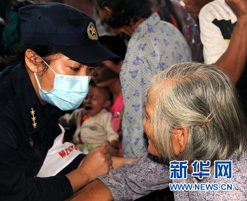 10月8日,解放军第四二五医院医疗队队员在为万宁市万城镇乌场村村民进行诊治。新华社记者 侯建森摄