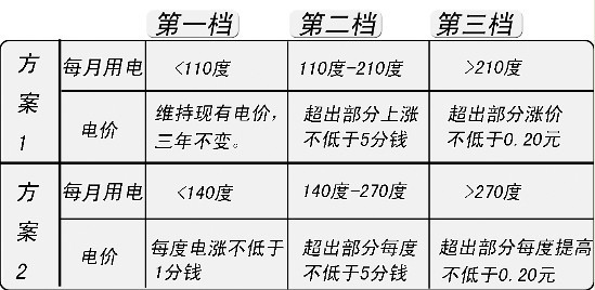 意见稿将对居民阶梯电价划分为基本用电需求、正常合理用电需求和较高生活质量用电需求三个档次,电价实行分档累进递增。文件还就电量档次划分提供了两个选择方案。