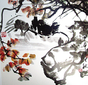 与妻子合作《枫蟹图》