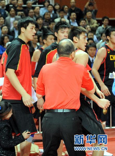 10月12日,一名受伤的中国队球员被工作人员搀扶下场。